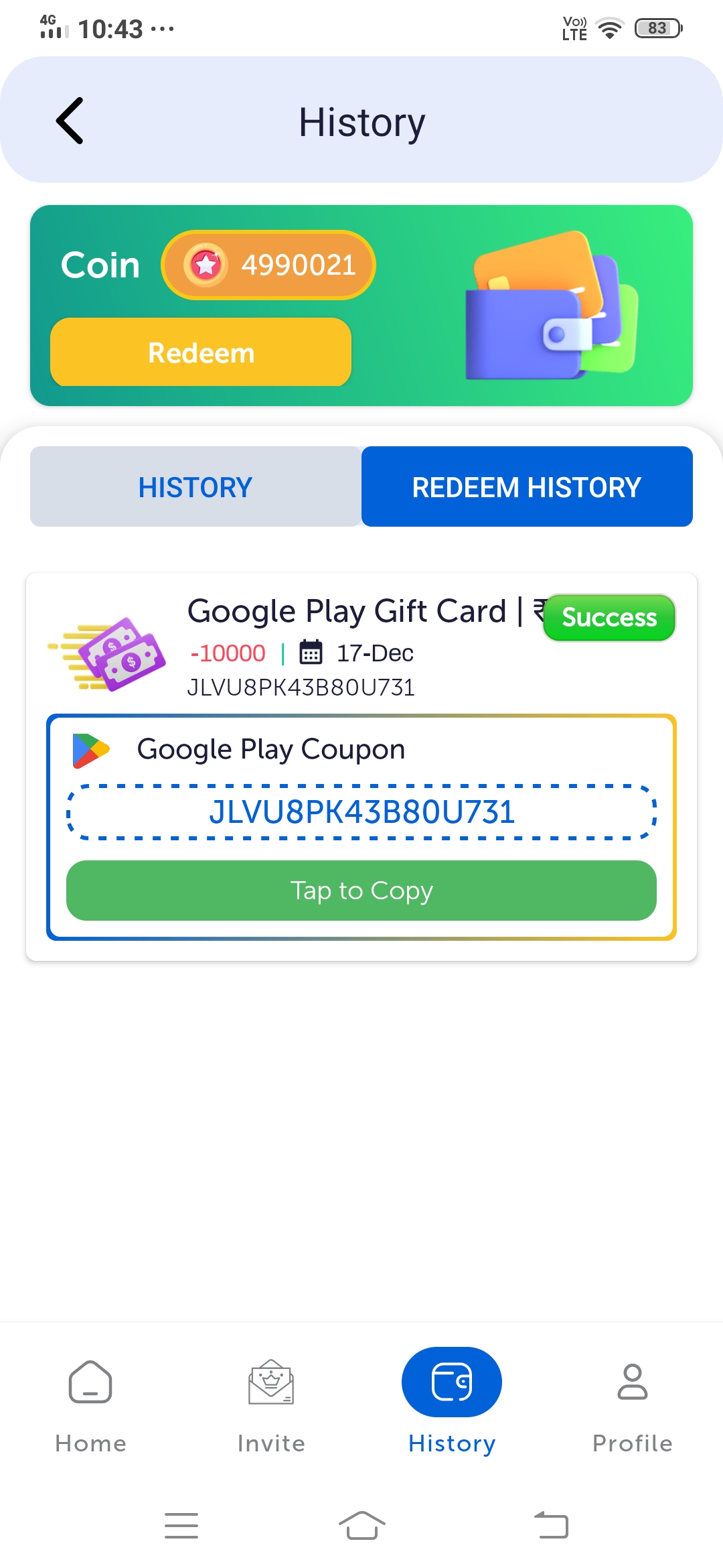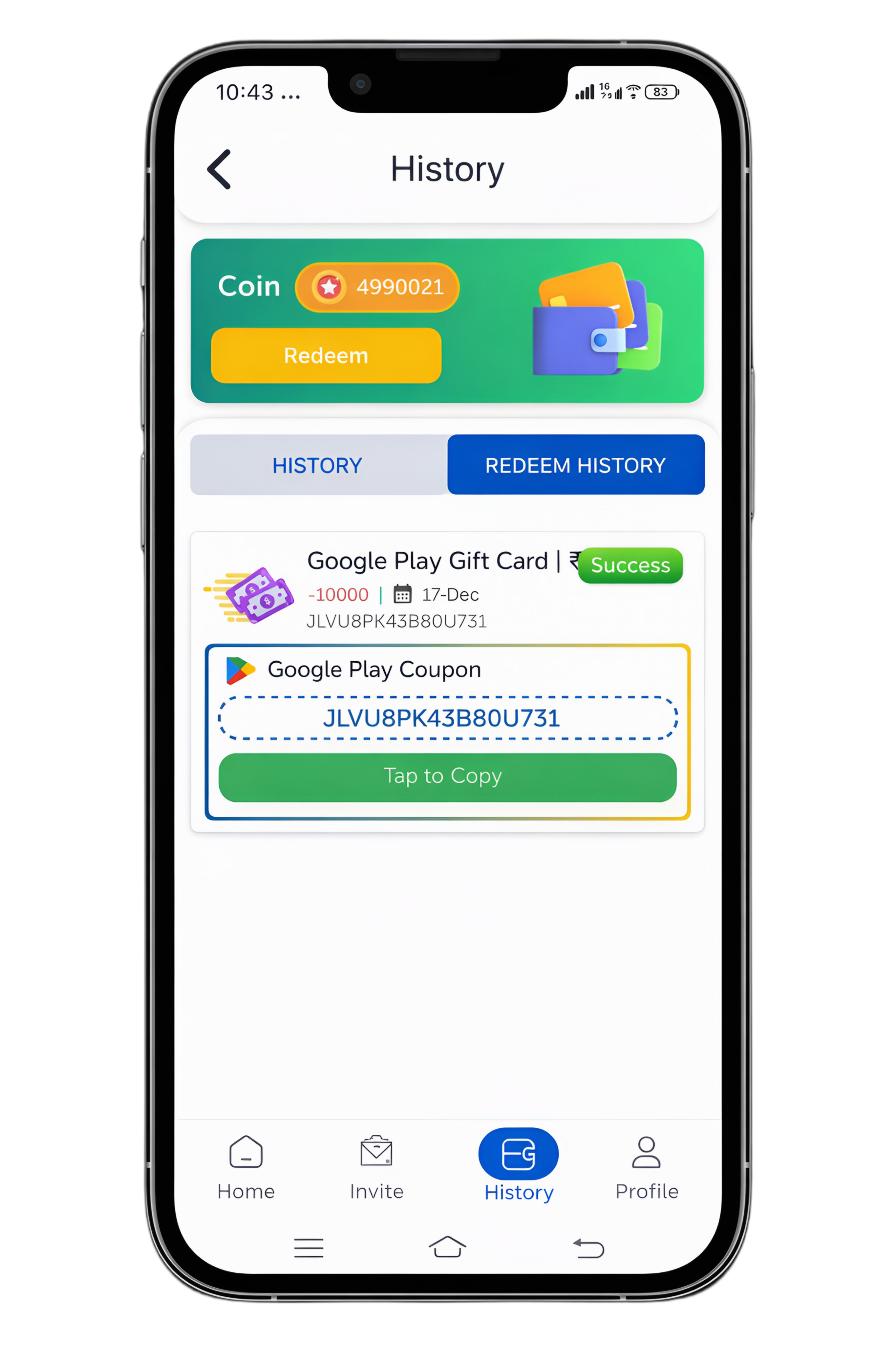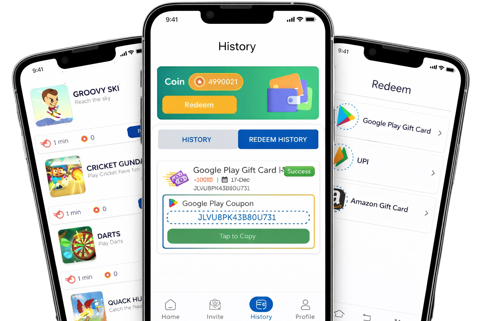 Withdraw your rewards easily through UPI or redeem them using Google Play gift codes and Amazon Pay options.